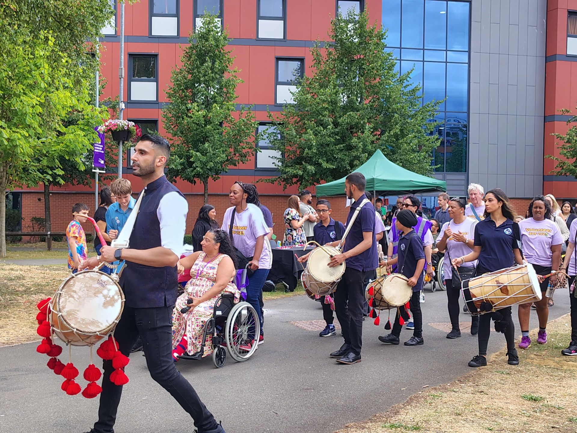 The exciting part of the festival includes procession around the ground of the festival by the local bhangra drums group which lead the procession.