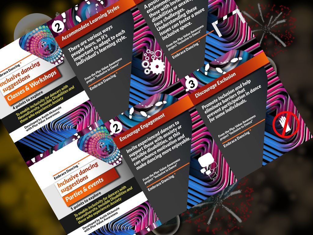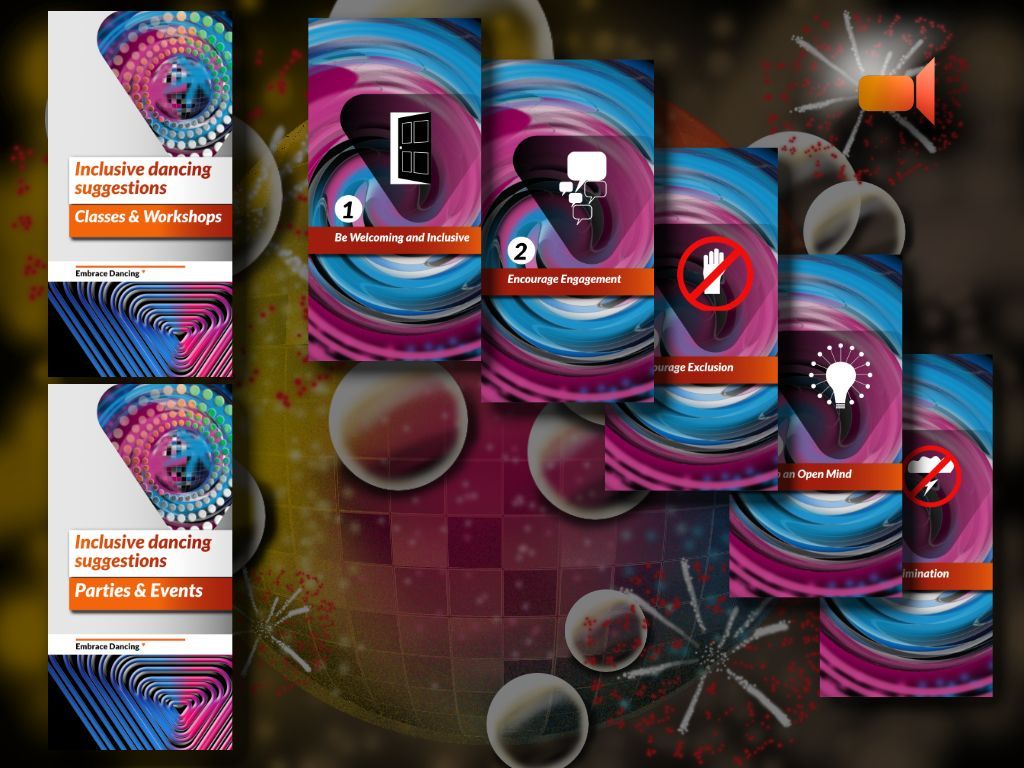 To enable this idea possible, I had a number of meetings and conversations with Mauricio over the best way forward. Firstly I have shared extracts from the downloadable inclusivity pledges linked with the Plus Value Awareness project "Inclusive to dance" and the existing examples of social media carousel templates to present short tips and guides linked with the awareness initiative embrace dancing.
