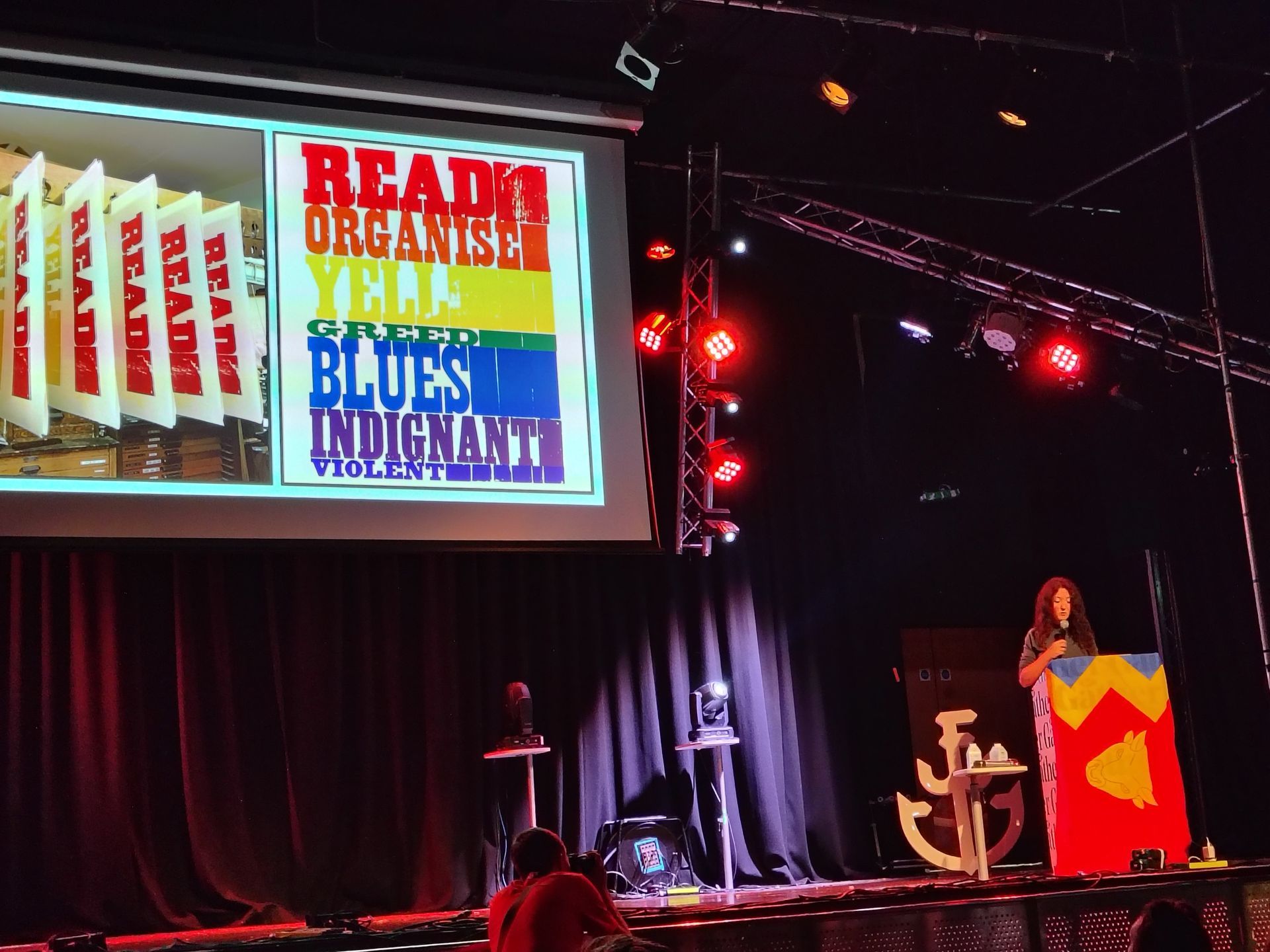 Sarah uses her passion to develop her creativity on issues related to changing political movements against dividing communities. Some of her work has been feared by politicians. Her ideas are an impulse to do something that's going on. Also she colaberates on projects which leads from digital to screen print.