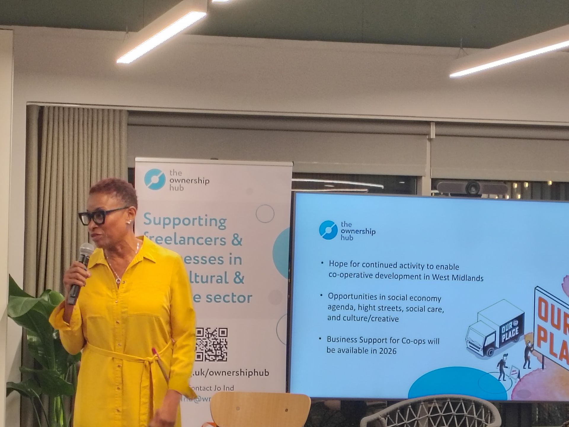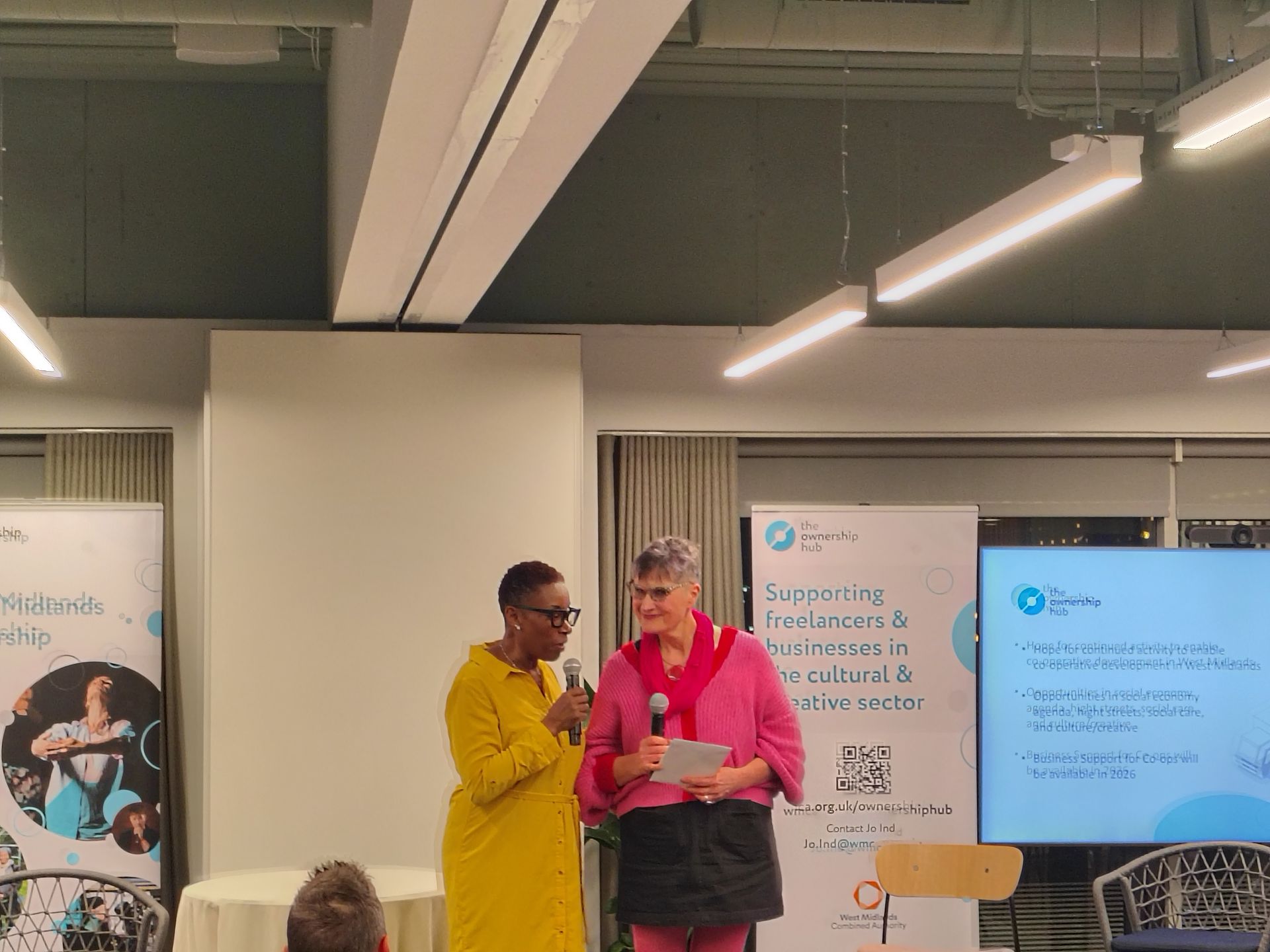 The event also celebrated the achivement of Jo Ind the former Hub Co-ordinator of West Midlands Ownership Hub, a previous regional section of the National Ownership Hub which was supported by the West Midlands Combined Authority this was presented by both Nikki Tapper MBE and James Wright (Policy and Development Lead, Co-operatives UK)