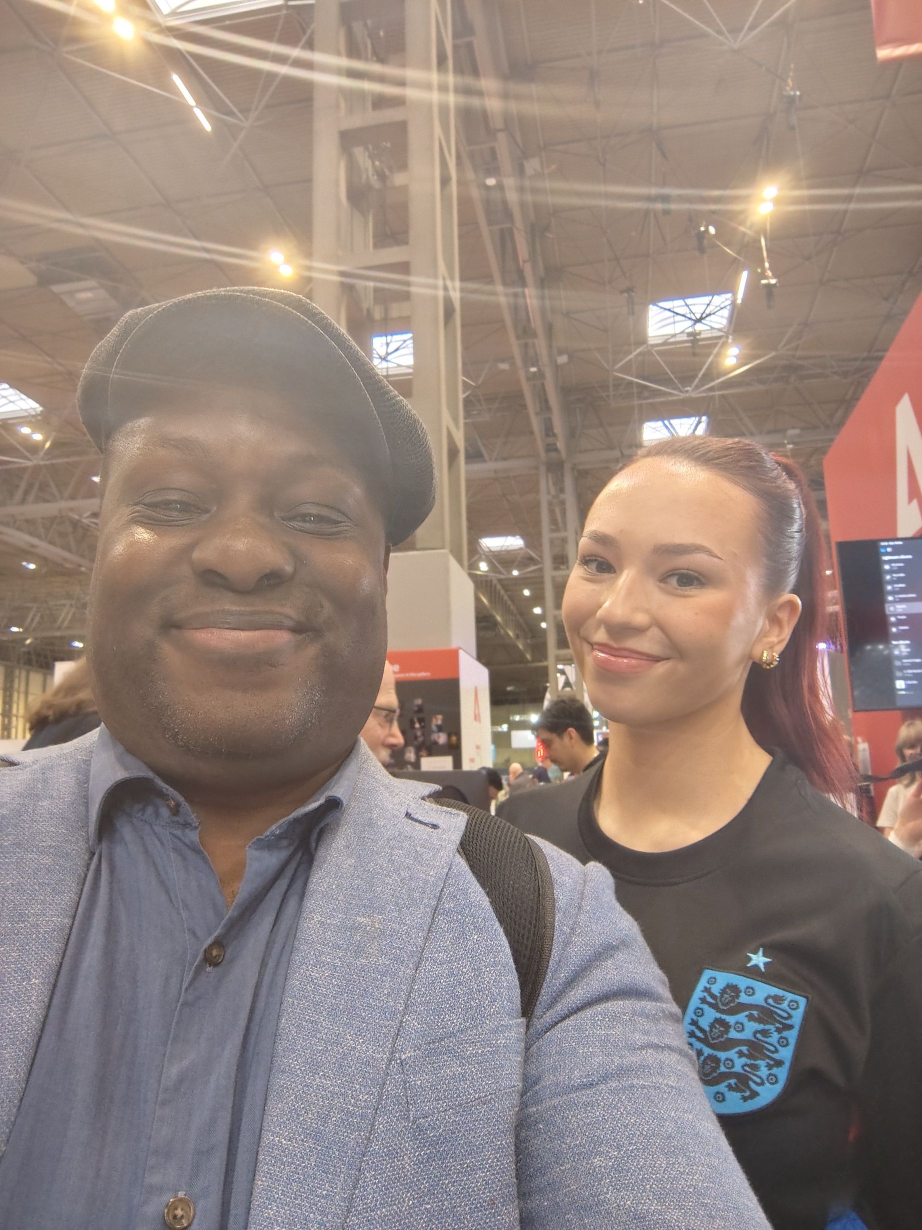 I also met another model, Beth, at the Adobe stand, who was posing as a professional footballer linked to Adobe’s promotion of the Women’s FA Cup tournament. During our conversation, she mentioned that she is also a professional dancer, and I told her about my inclusive dancing initiative, Embrace Dancing.
