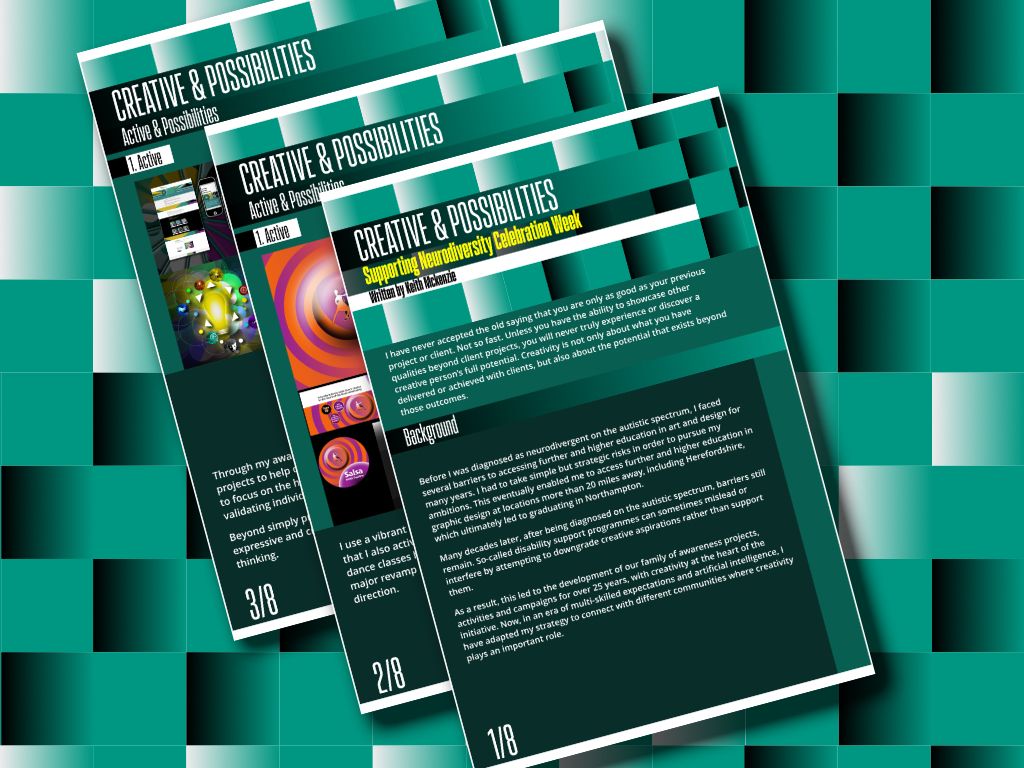Before I was diagnosed as neurodivergent on the autistic spectrum, I faced several barriers to accessing further and higher education in art and design for many years. I had to take simple but strategic risks in order to pursue my ambitions. This eventually enabled me to access further and higher education in graphic design at locations more than 20 miles away, including Herefordshire, which ultimately led to graduating in Northampton.