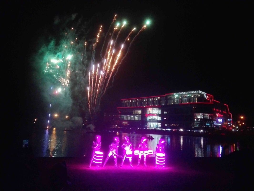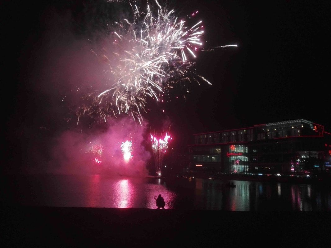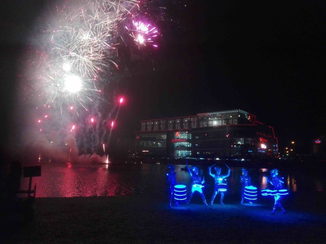The celebrations features a spectactular fireworks display along with a drum band in a multicolour neon light display. All the is infront of lake setting in front of the Resorts World complex.