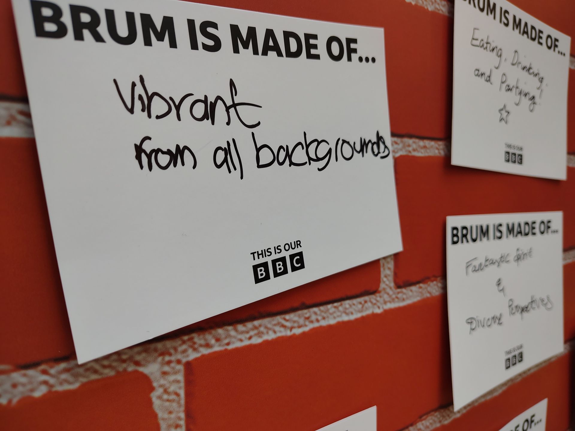 The event included an interactive comment wall featuring inviting the local general public's expressions about Birmingham. Additionally, BBC Regional TV news and local radio teams were present to cover the event.