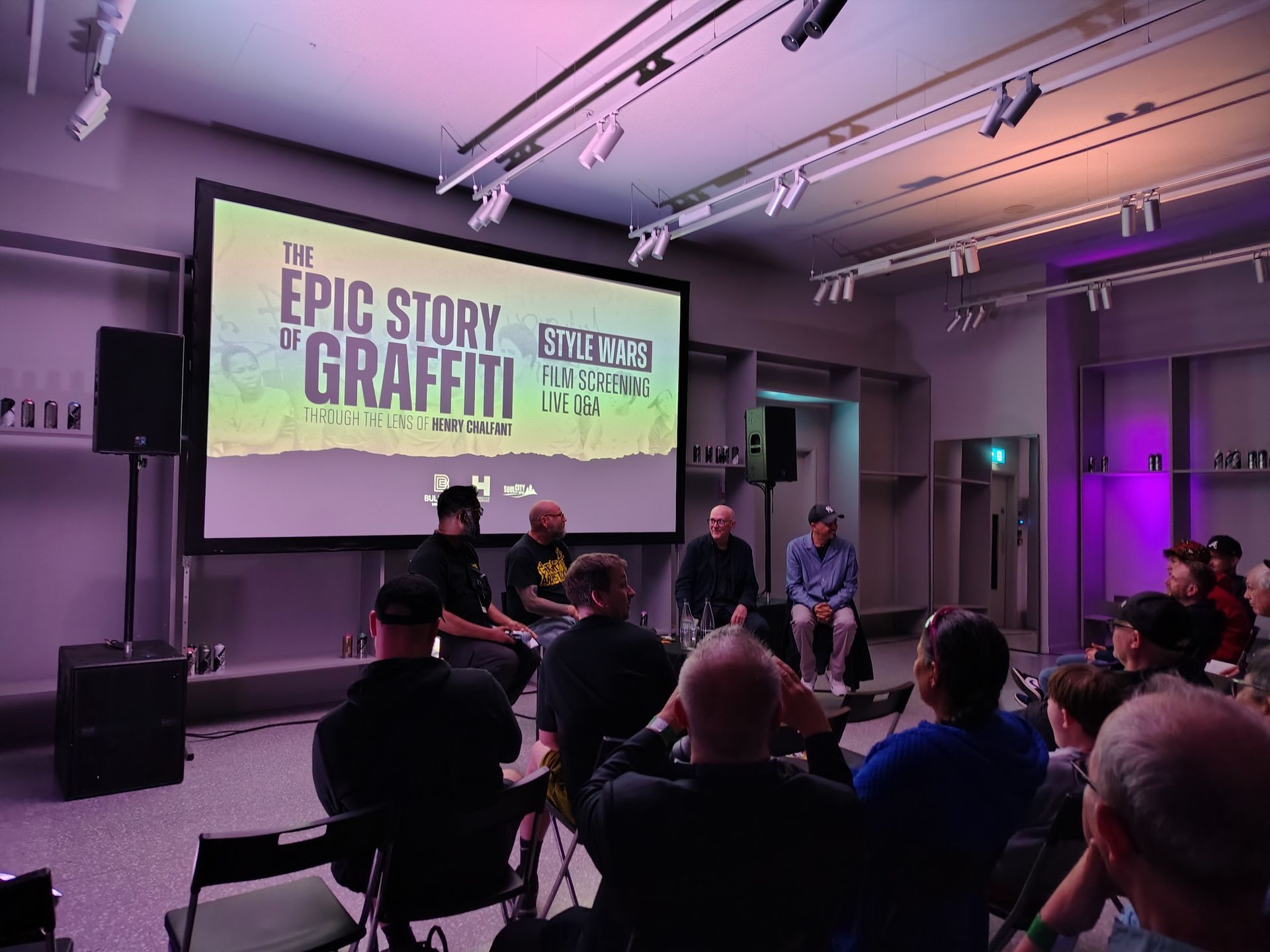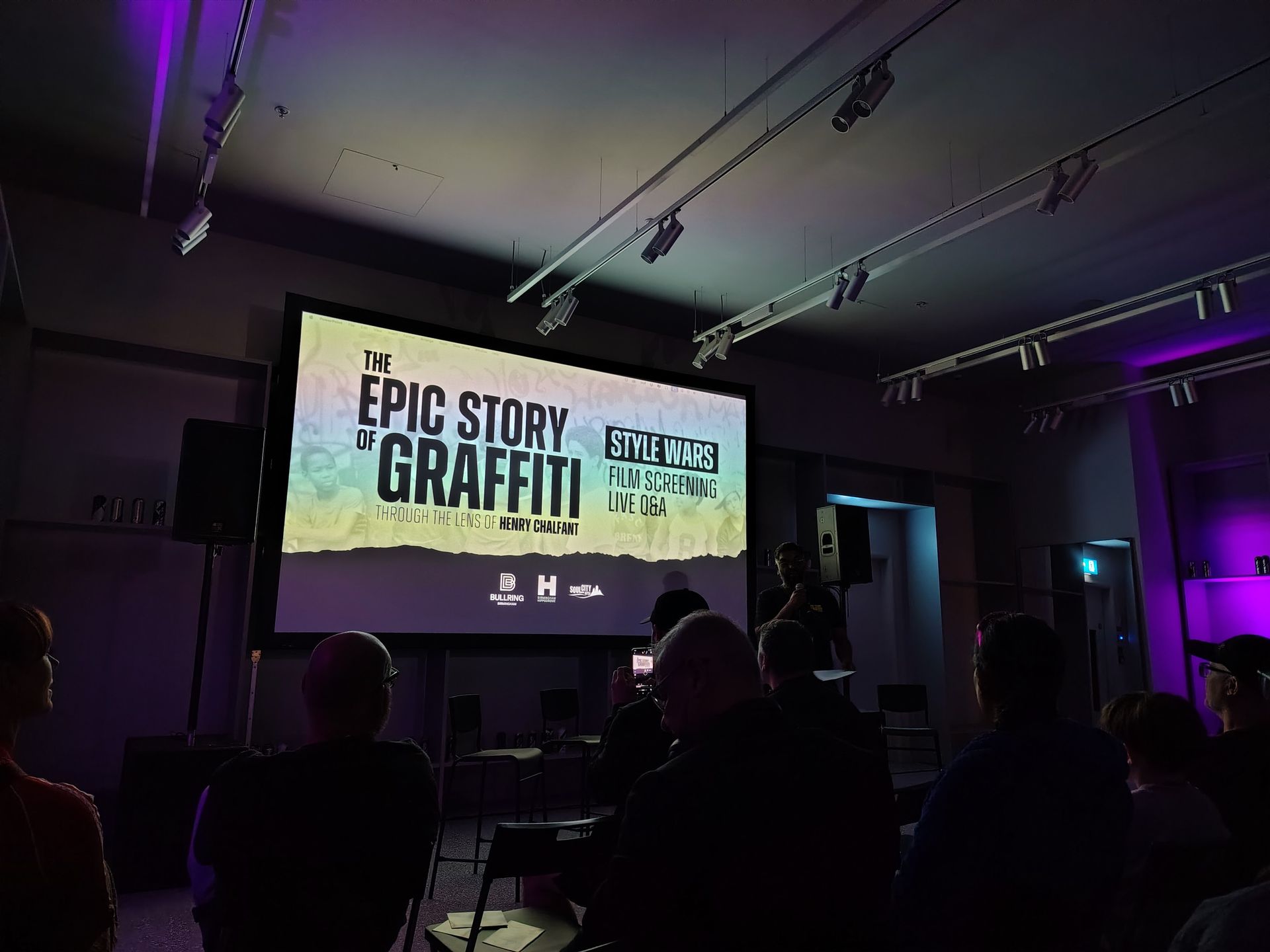 As well as a screening, a live Q&A discussion occurred. The discussion was led by Muhammad Ali Areosol, the Director of Soul City Arts with guests in person including Henry Chalfant & Carlos Mare.