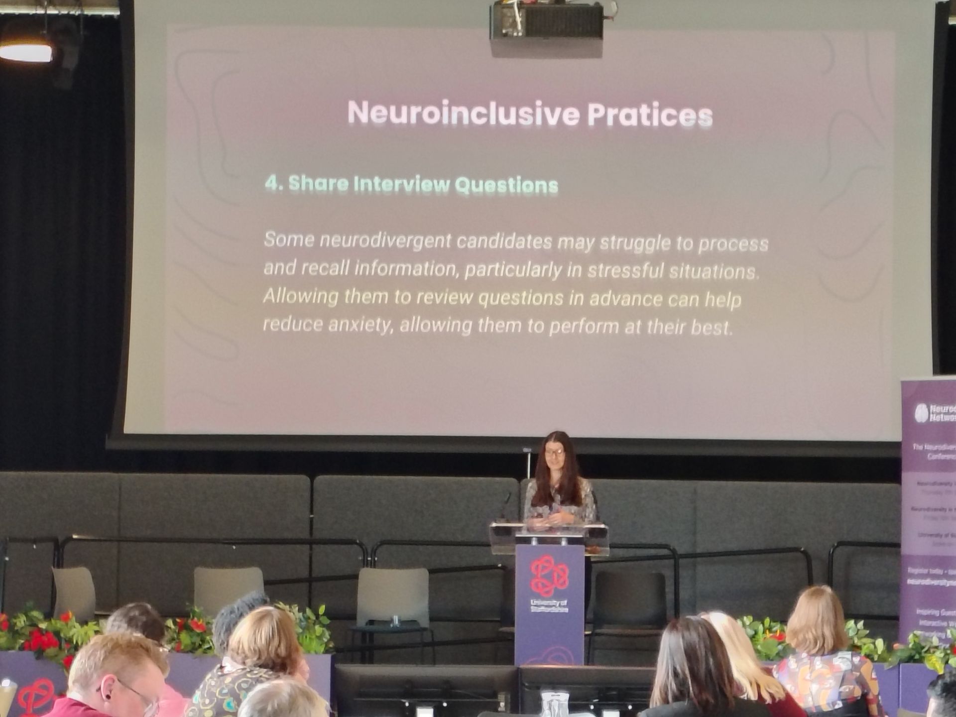 The director of the Neurodiversity Network, Claire Kerry demonstrates examples of to be inclusive of a neurodivergent related to recruitment.